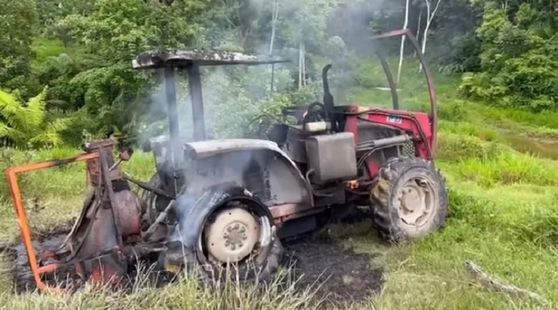 Um incêndio destruiu parcialmente um trator Massey Ferguson em uma propriedade rural, localizada no km 12 da linha 164, lado Sul, em Novo Horizonte do Oeste.
