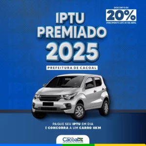 A Prefeitura de Cacoal anunciou o programa IPTU Premiado 2025, oferecendo desconto de 20% para os contribuintes que mantiverem seus pagamentos em dia. Além do desconto significativo, os participantes concorrerão a um carro zero quilômetro como premiação especial.