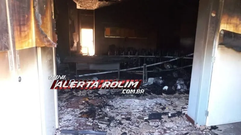 Um incêndio destruiu o auditório do espaço céu das artes, localizado na Avenida São Paulo, bairro Beira Rio, em Rolim de Moura.