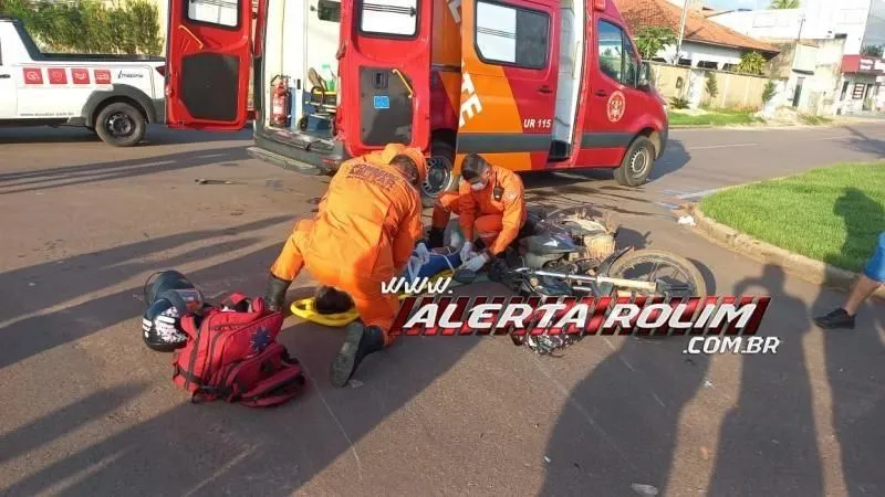 Um grave acidente de trânsito foi registrado na manhã dessa sexta-feira, 26, no Centro de Rolim de Moura.